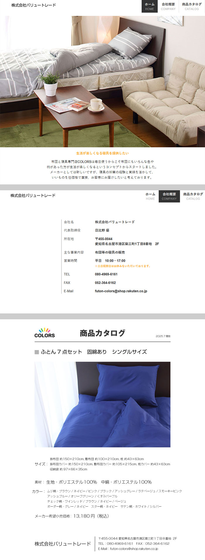a034 ふとん7点セット固綿ありS