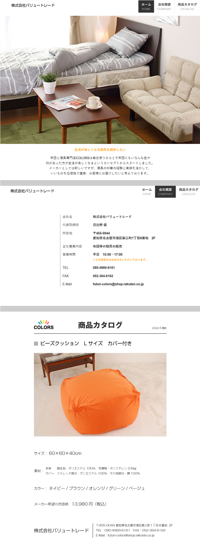 a124 ビーズクッションL カバー付き