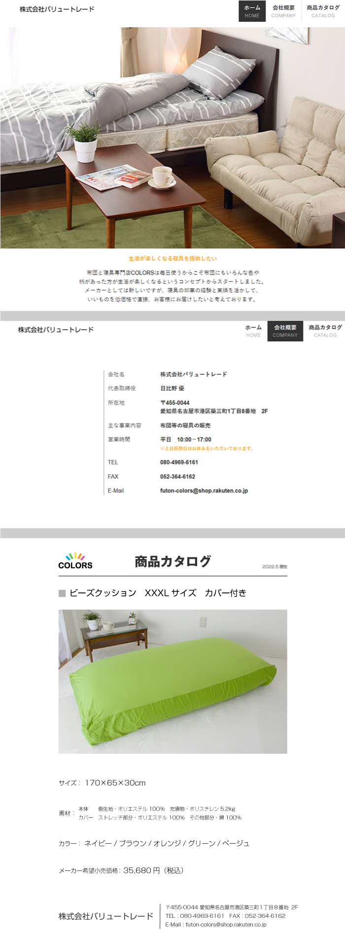 a125 ビーズクッションXXXL カバー付き