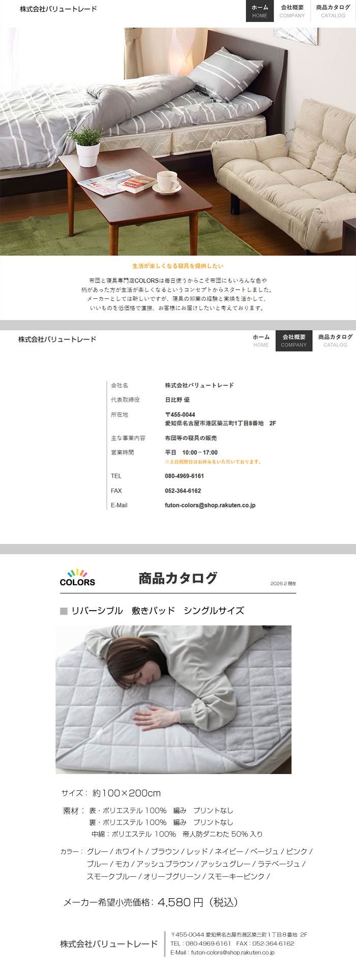 a605 リバーシブル敷きパッドS