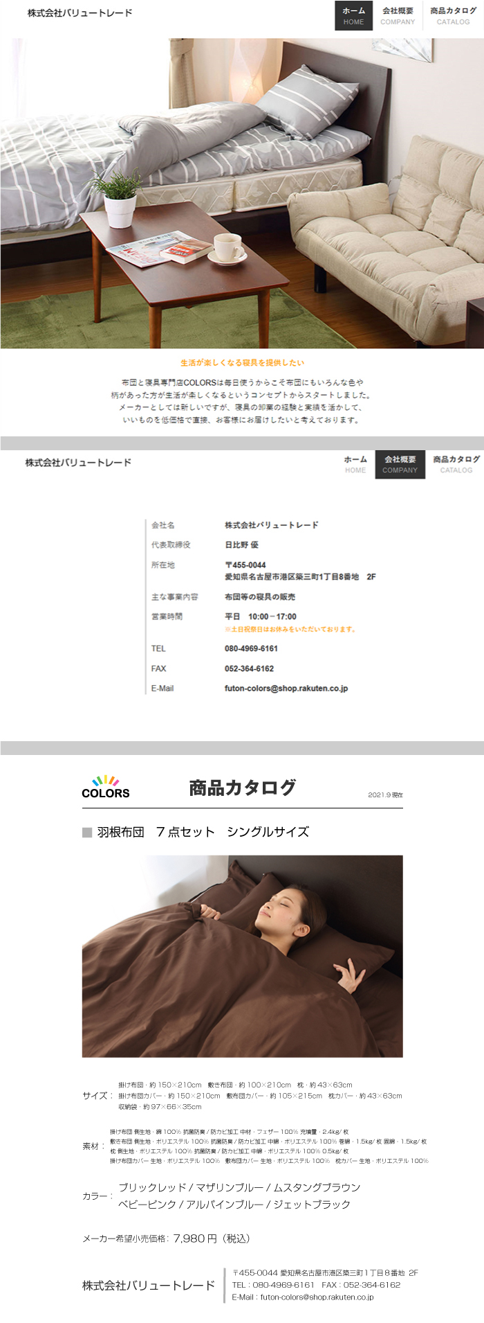 a619 羽根布団7点セットS