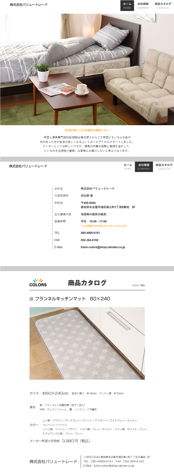a716 低反発フランネルキッチンマット60×180