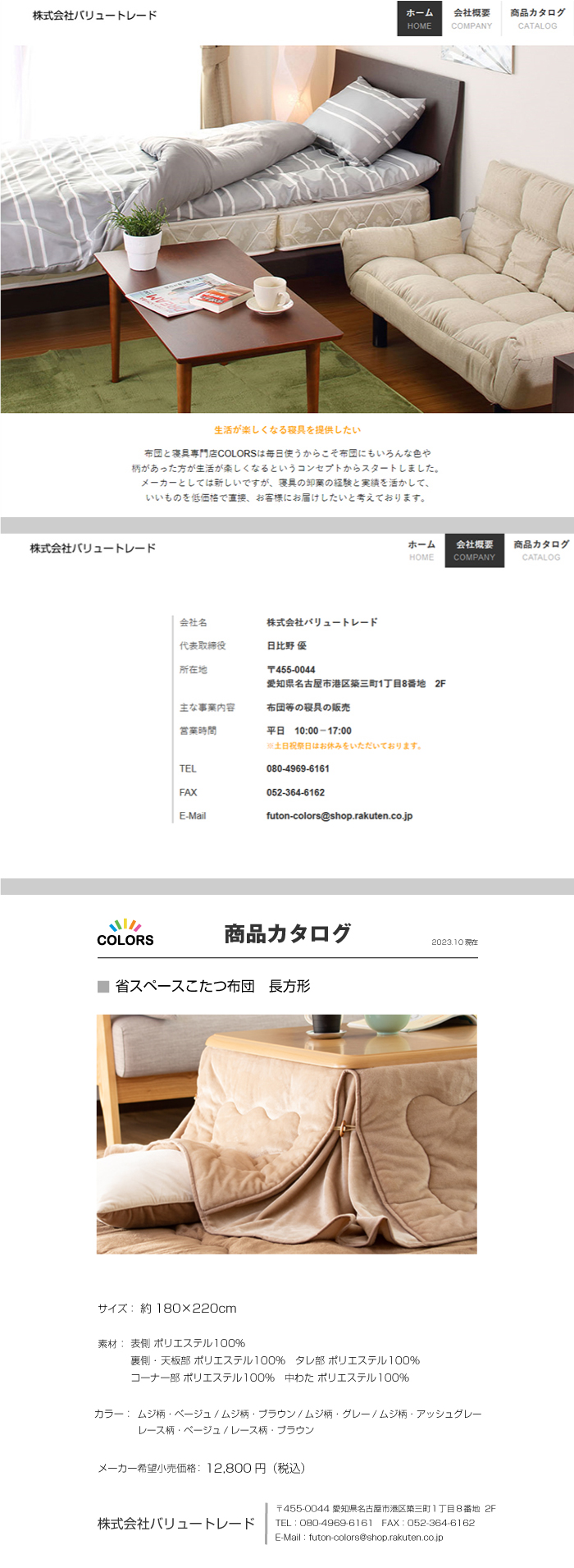 a952 省スペースこたつ布団長方形