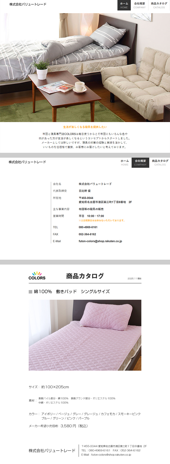 ss001 綿100%敷きパッドS